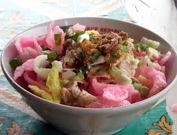 Irisan daun bawang, irisan seledri, bawang goreng, dan kerupuk